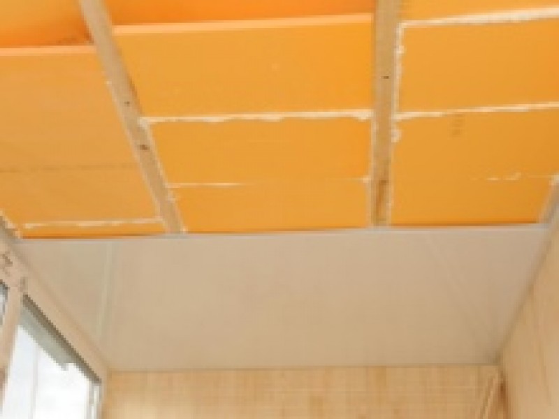- Популярный ППС или пеноплекс можно установить как с каркасом, так и без него. Плиты или листы присоединяются к потолочной плите с помощью специальных и надежных клейких средств. Более удобным является каркасный способ монтажа, особенно, если вы планируете заняться панельной обшивкой балкона.